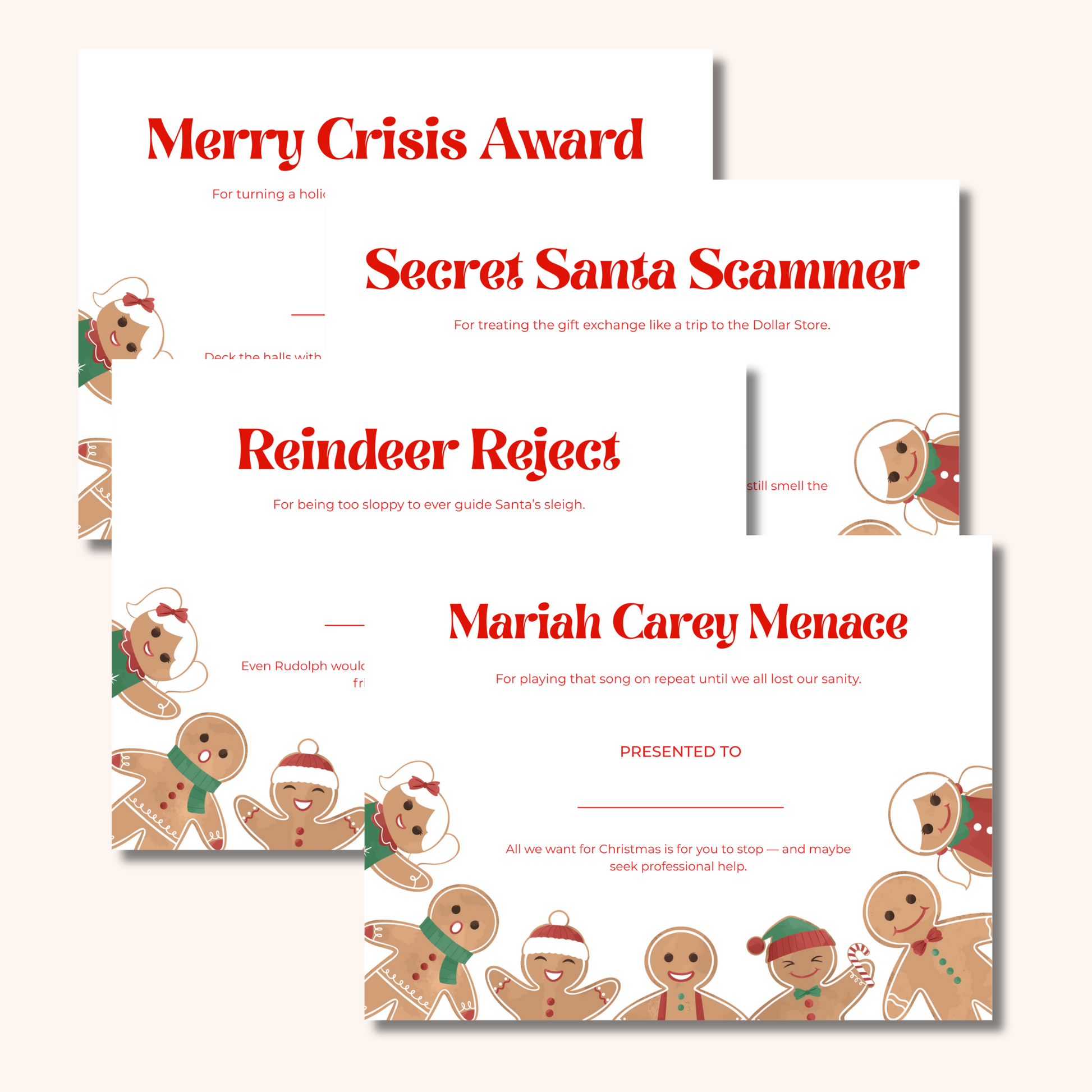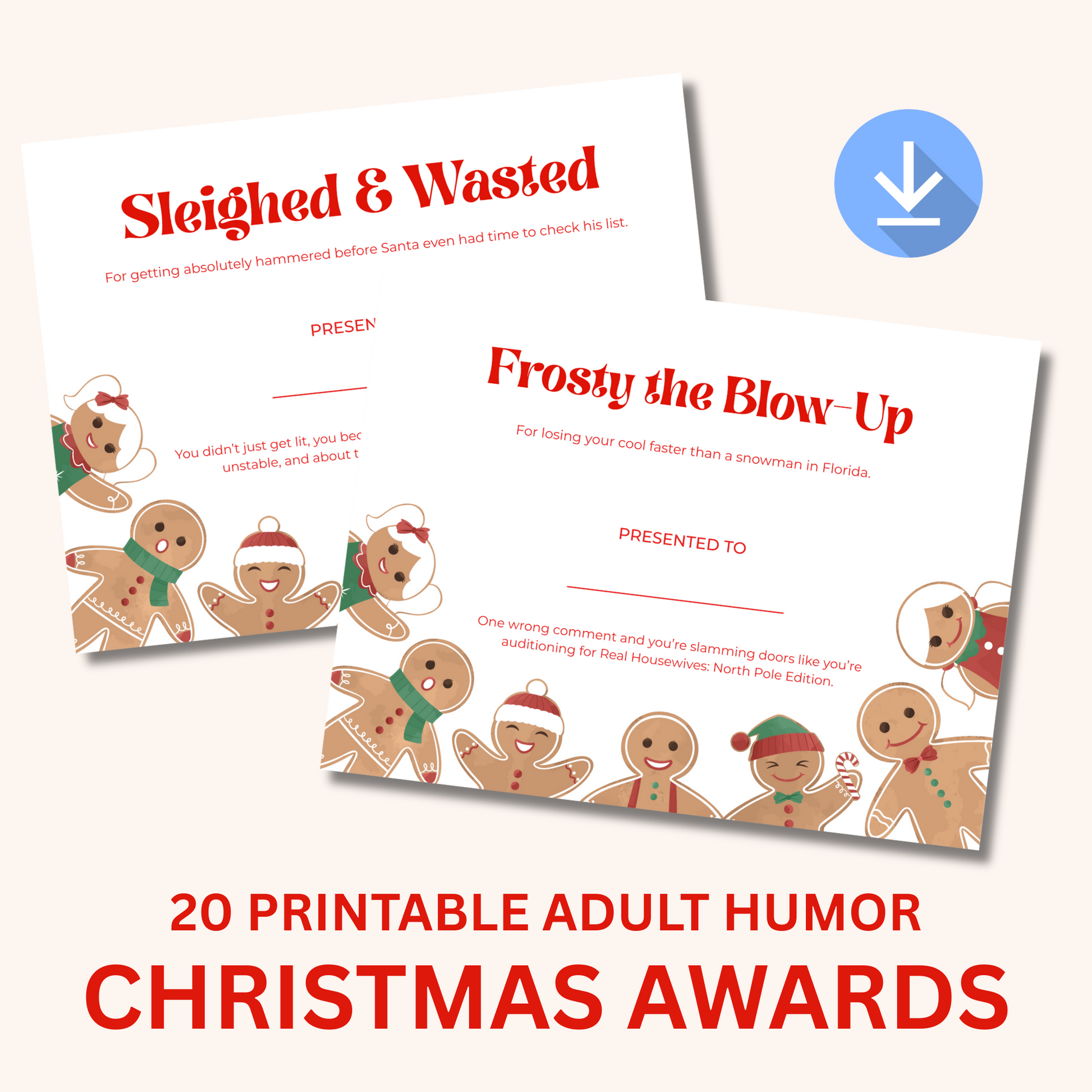 Bring laughter to your holiday party with these 20 hilarious printable Christmas Awards! Perfect for office parties, ugly sweater nights, or family gatherings.